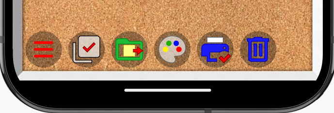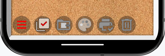 In the lower left corner of each board, there's a button with three horizontal lines (≡). This is the Main Menu button, which contains tools that allow you to perform certain operations with a group of selected notes.
