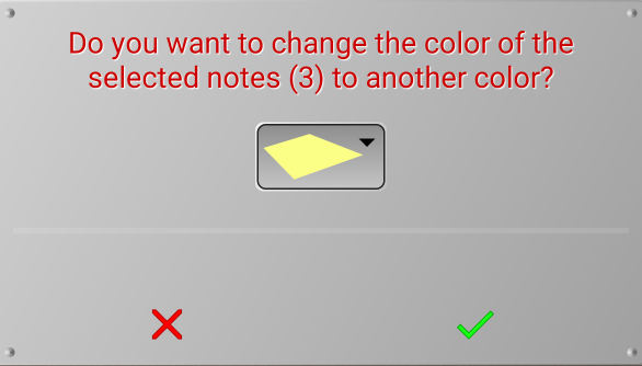 Select the color you want to change the current colors of the selected notes to. The notes you select can be the same color or different colors. Click the green checkmark to change the colors of your marked notes to the color you selected.