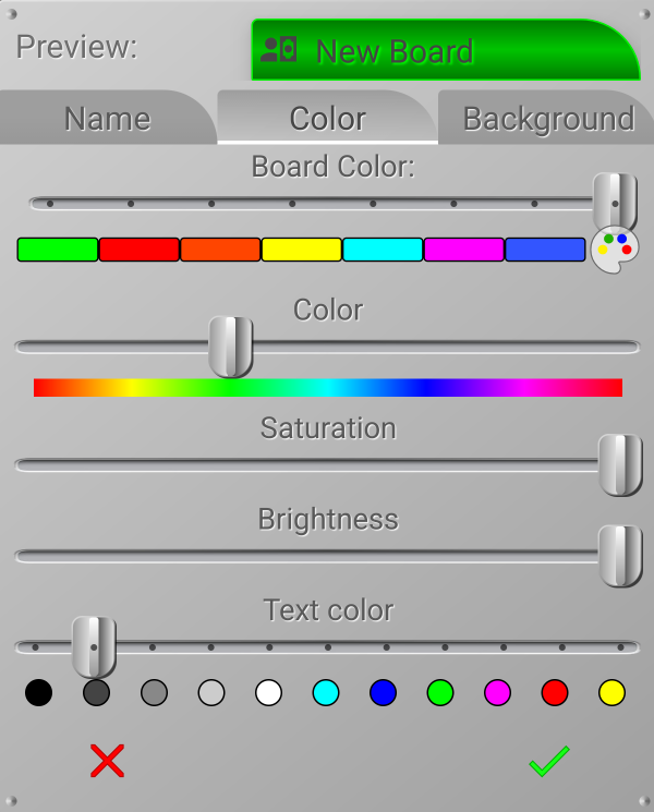 You can choose the board name color by simply moving the slider to the desired color.