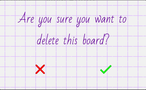 If you opened this window to delete a board, click on the blue trash can icon at the bottom center of the window. A window will appear asking you to confirm that you want to delete the board.