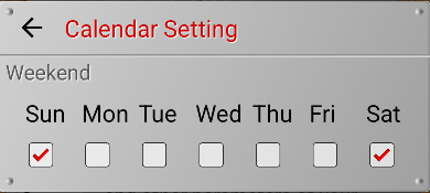 This section currently has only one setting, but this section may be expanded in the future. For now, you can only select which days of the week are your days off. Honestly, this setting has almost no effect. These days will simply be highlighted in red in Calendar.