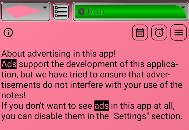 Enter your search text in the search bar and click the search button (with the magnifying glass icon). For example, we entered the word "ads". All notes containing the word "ads" will be displayed below. If you open such a note, you will see that the word you are looking for will be highlighted in the text.