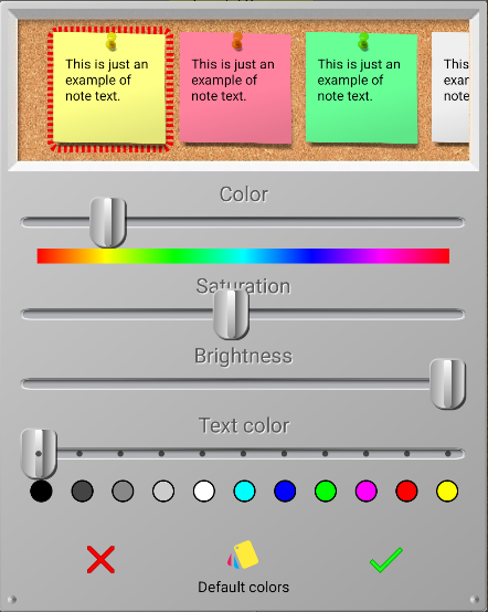 To customize note colors, click the button with the palette icon. You'll see the following window: