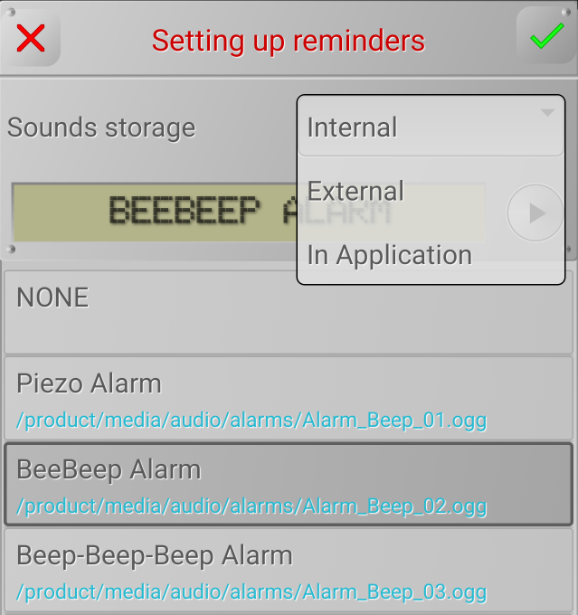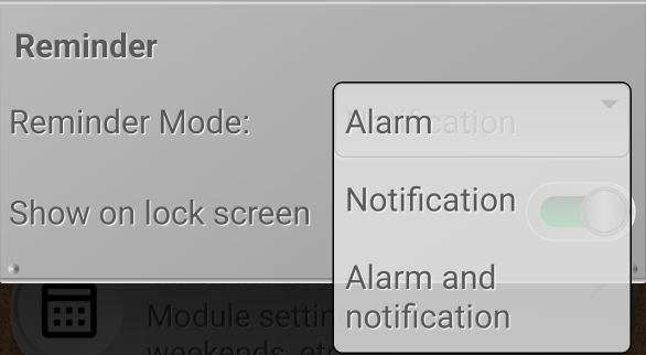 First of all, you need to decide on the reminder mode. The application has two reminder modes – Alarm and Notification. You can select one of these modes or both at the same time.