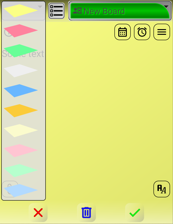 Initially, you will see the colors that are set by default. You can change this color set in the "Settings" section of the "Note Settings" section. The note's background changes when you select the desired color. When you save a note, its color is remembered and the next new note you create will be the same color, but you can always change it in the same way.