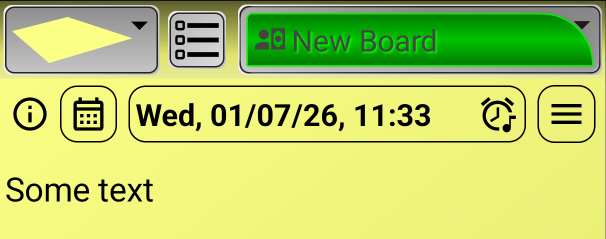 7. The next button allows you to set a reminder for the note. If a reminder is set, you will receive a notification and/or alarm at a specific date and time. You can read more about setting reminders in the "Reminders" section. If a reminder is set for a note, the button becomes larger and displays the reminder's date and time.