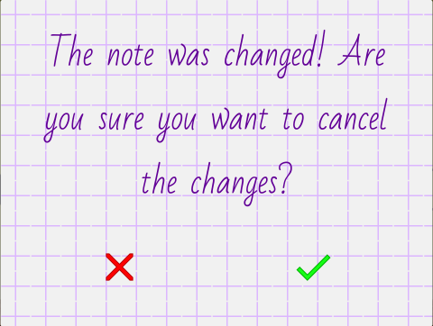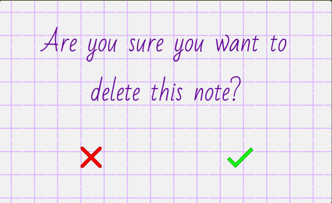 If you click the green checkmark, the note will be deleted; if you click the red cross, you will return to working with the note.