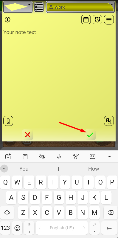 Write some text, for example, “New note” and save the note by clicking the green checkmark. You'll see your note appear on the board.