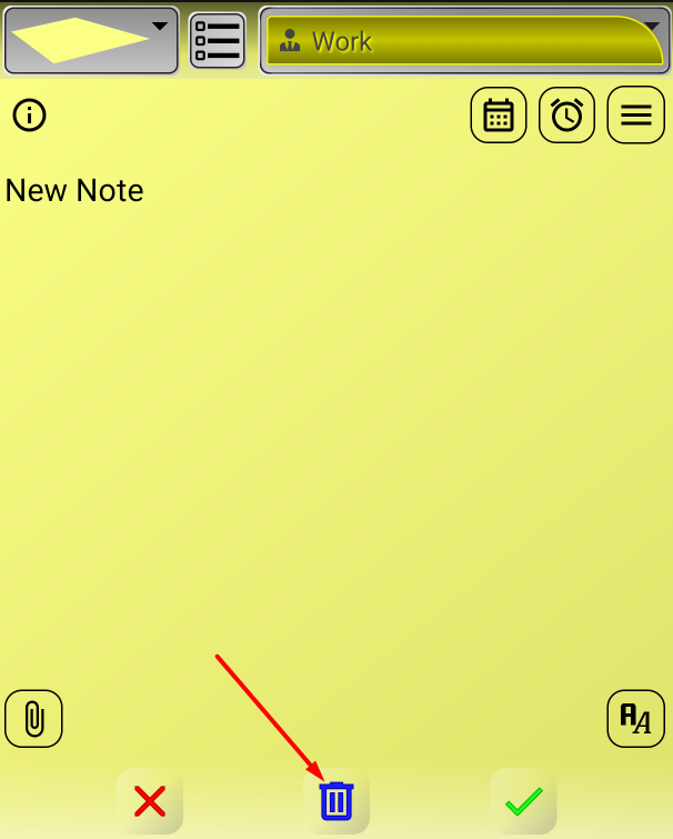 Now click on it to open it again and read it. Now delete this note by clicking the button with the blue trash can icon.