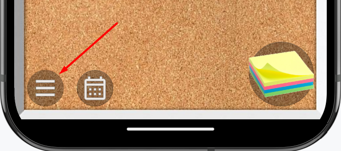 In the lower left corner of each board, there's a button with three horizontal lines (≡). This is the Main Menu button, which contains tools that allow you to perform certain operations with a group of selected notes.