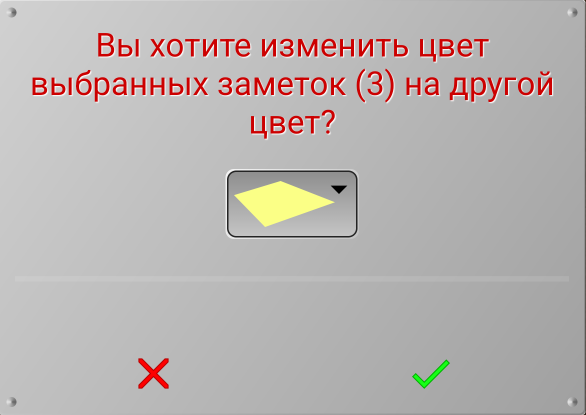 Выберите цвет, на который вы хотите изменить текущие цвета выбранных заметок. Выбранные вами заметки, могут иметь как одинаковый цвет, так и разные цвета. Нажмите на зеленую галочку, чтобы поменять цвет помеченных заметок, на тот цвет, который вы выбрали.