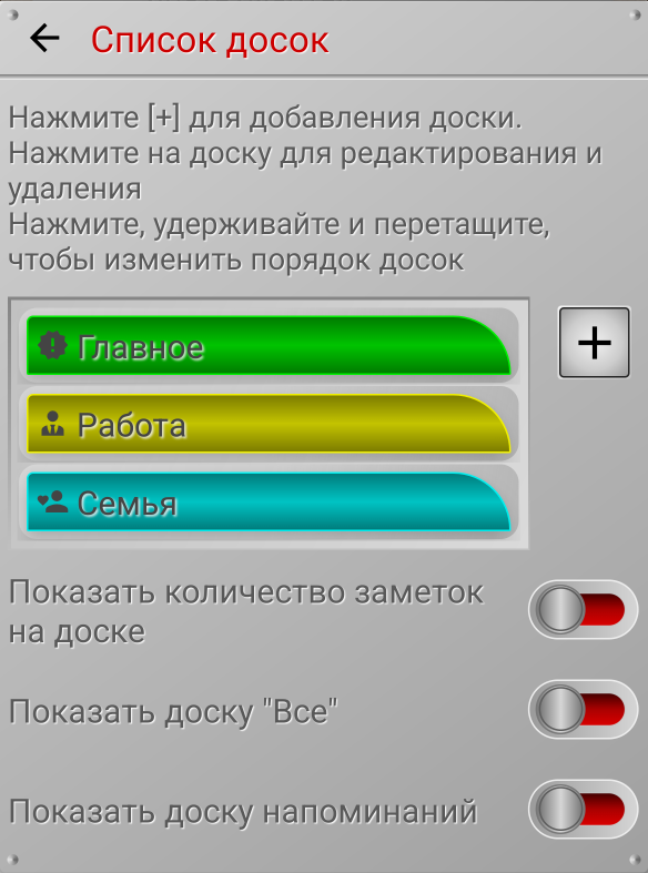 👉 Чтобы поменять порядок досок, вы можете нажать на любую доску и, не отпуская, перемещать ее пальцем.