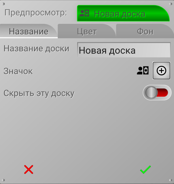 Нажмем на кнопку «+» и добавим новую доску (параметры существующей доски настраиваются аналогично). Откроется окно: