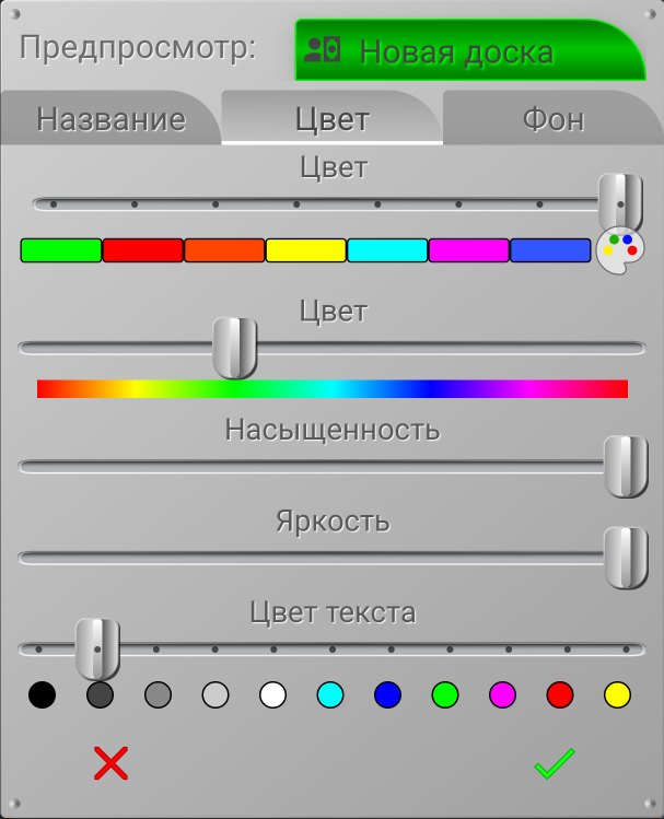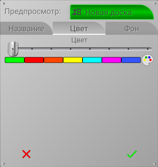 Вы можете выбрать цвет заголовка доски, просто передвинув ползунок слайдера на нужный цвет.