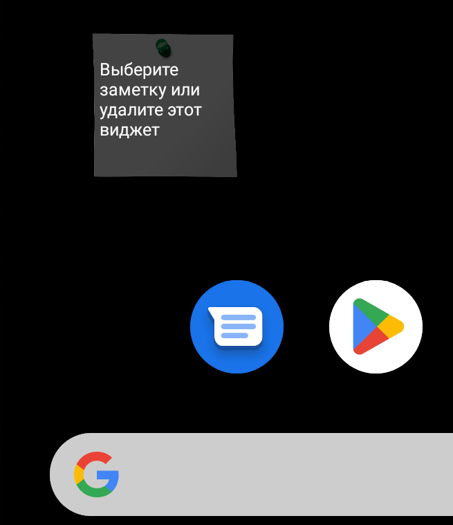 Если вы нажмете зеленую галочку, то заметка будет удалена, виджет будет выглядеть следующим образом: