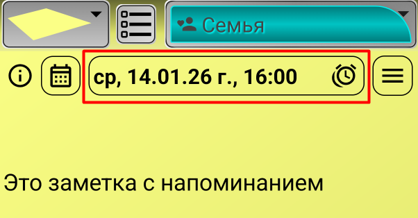 После того, как вы установили напоминание, кнопка в заметке будет выглядеть так: