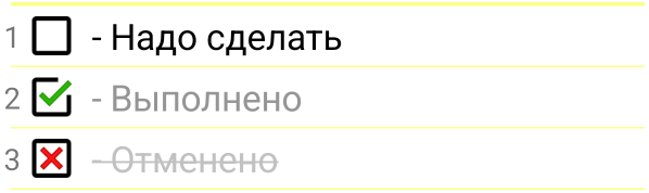 Режим контрольного списка удобно использовать, когда вам нужно составить некий план действий, состоящий из нескольких пунктов. Например, список покупок, которые вам нужно купить, план действий на день, перечень вещей для отпуска и т.п.