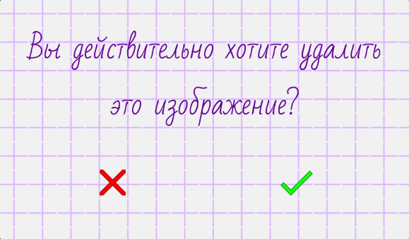 Если вы нажмете зеленую галочку, фото или видео будет удалено, если нажмете красный крестик, действие будет отменено.