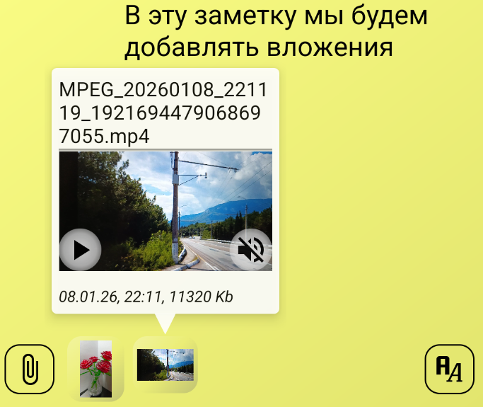 Все фото и видео, прикрепленные к заметке, открываются на просмотр в едином полноэкранном окне. Кликните на любое фото или видео, и оно будет открыто на полный экран.